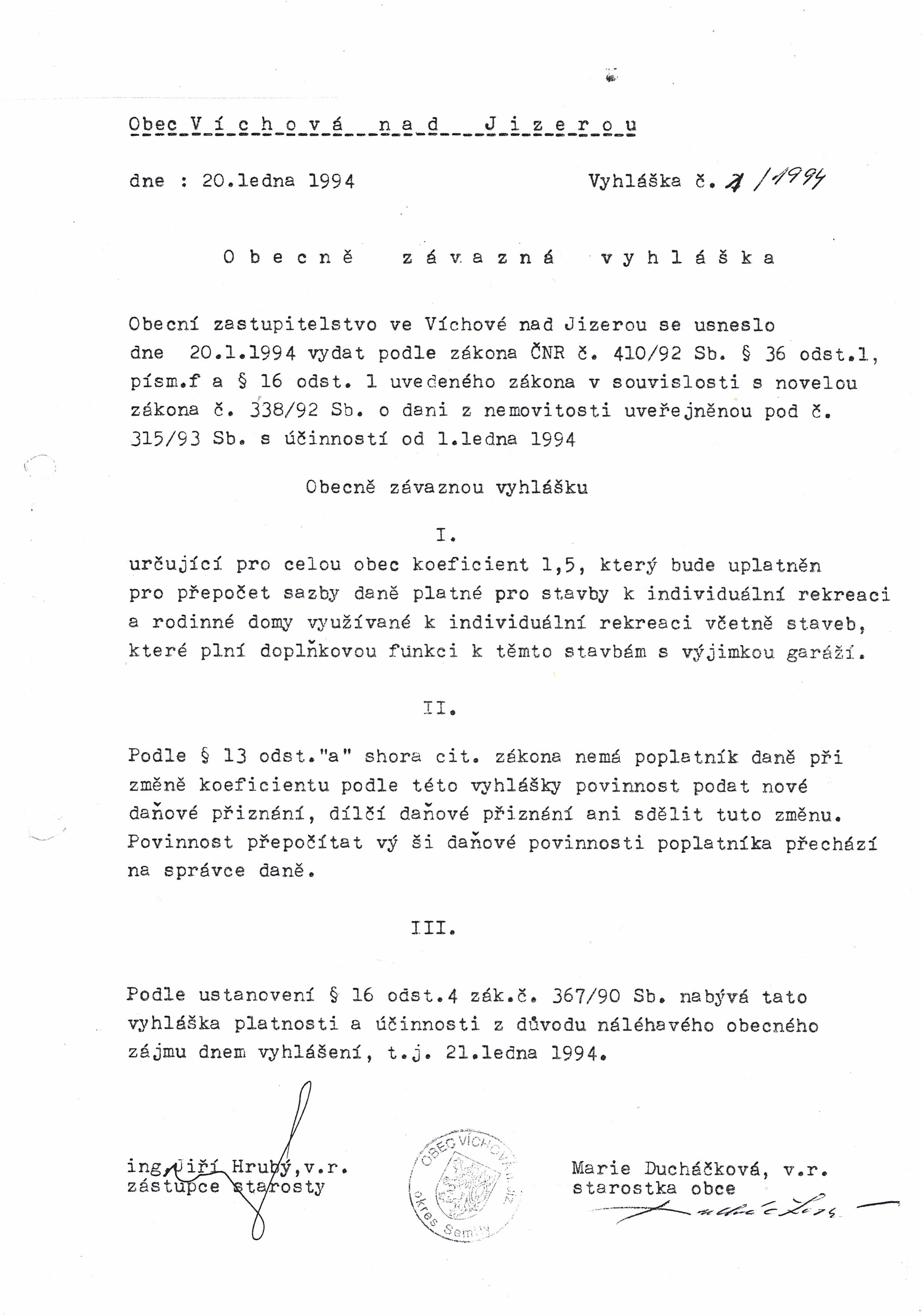 Obecně závazná vyhláška o stanovení místního koeficientu pro výpočet daně z nemovitých věcí